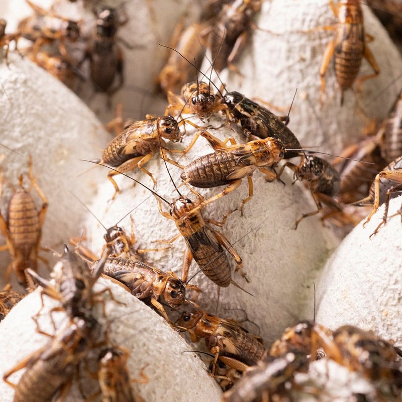 徹底した衛生管理のもと飼育されている健康・栄養満点の活コオロギ